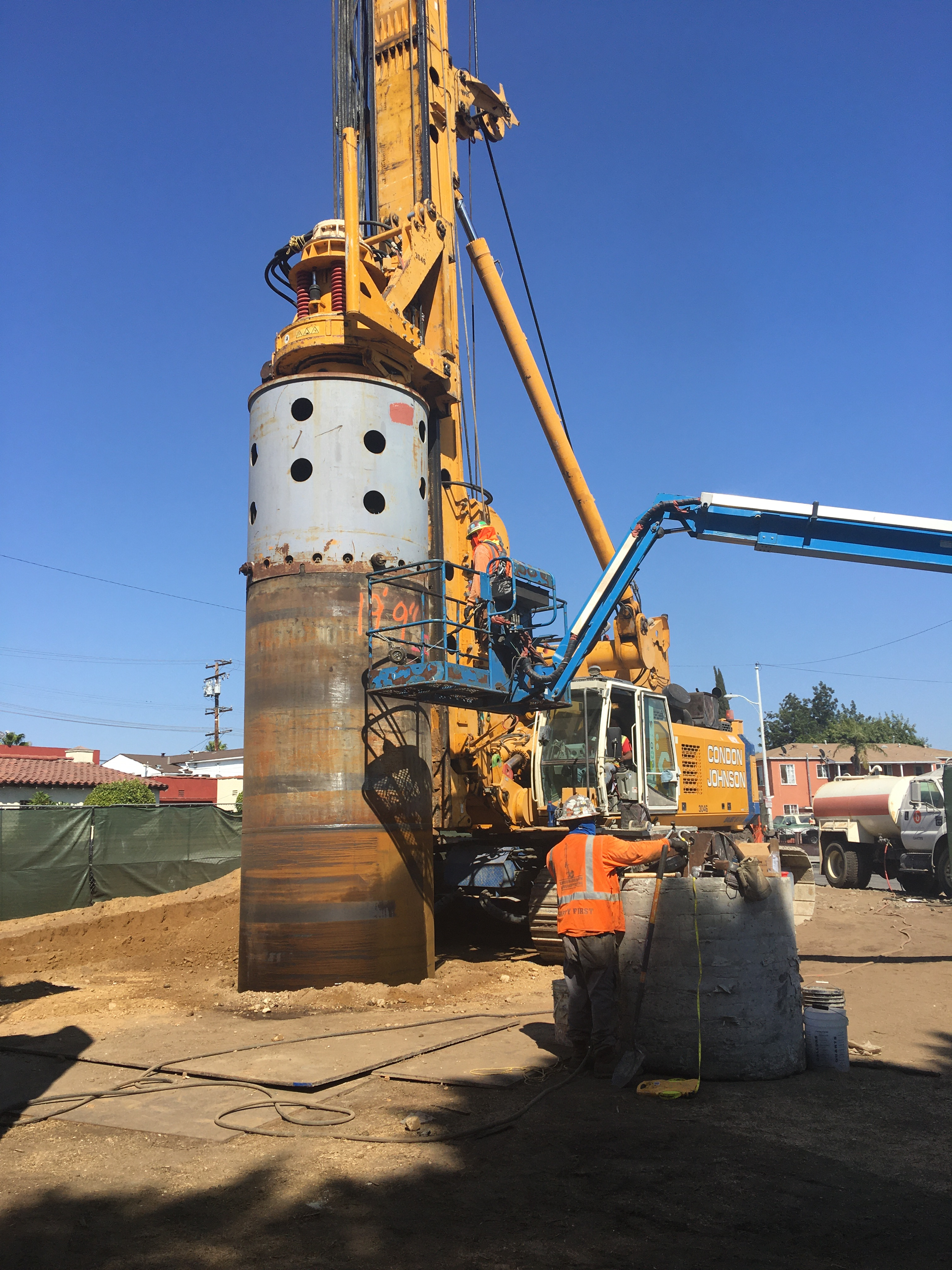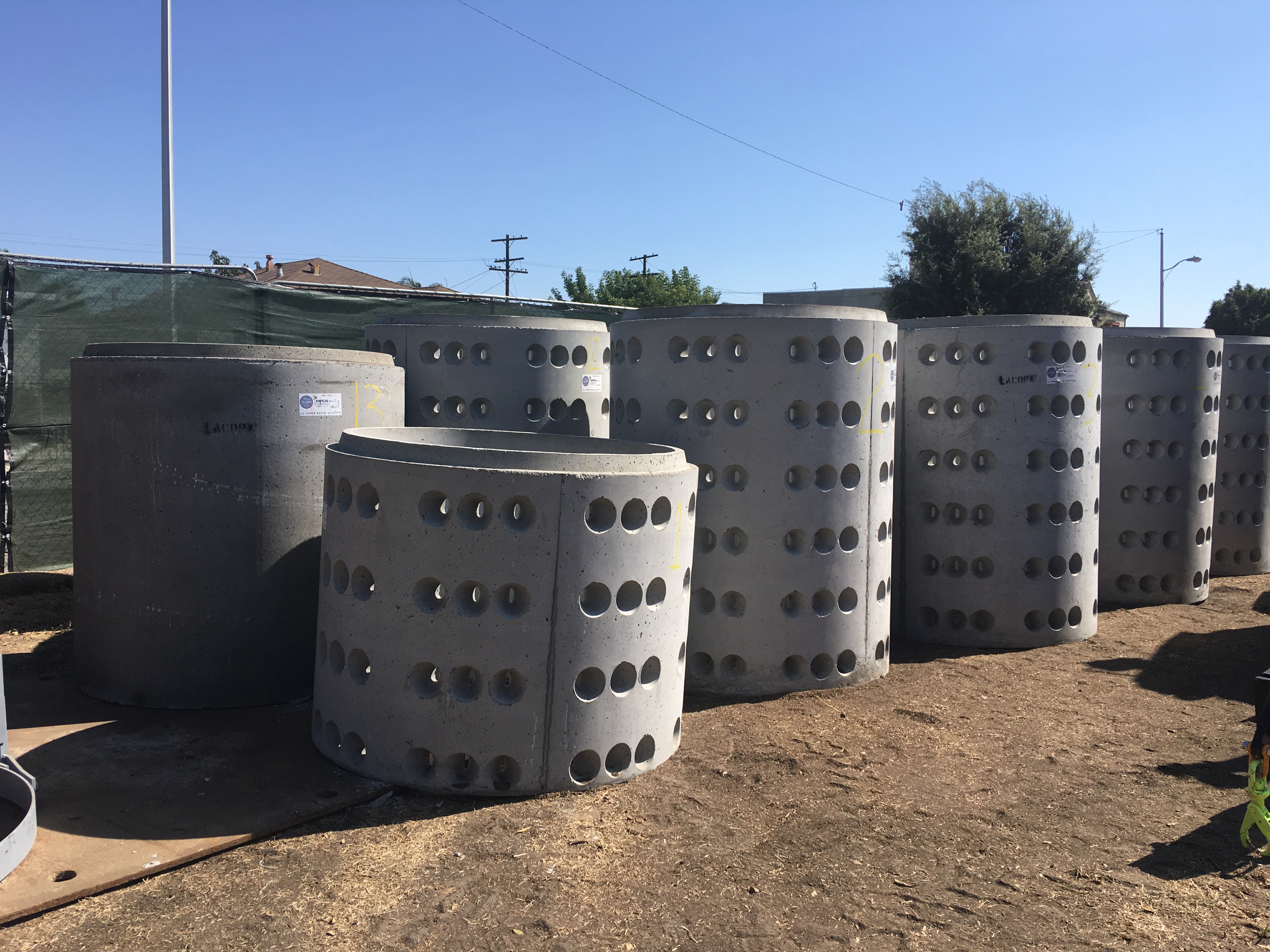 Drywell sections will be stacked in the drilled holes and will allow water to soak into the soil, eventually recharging the ground water