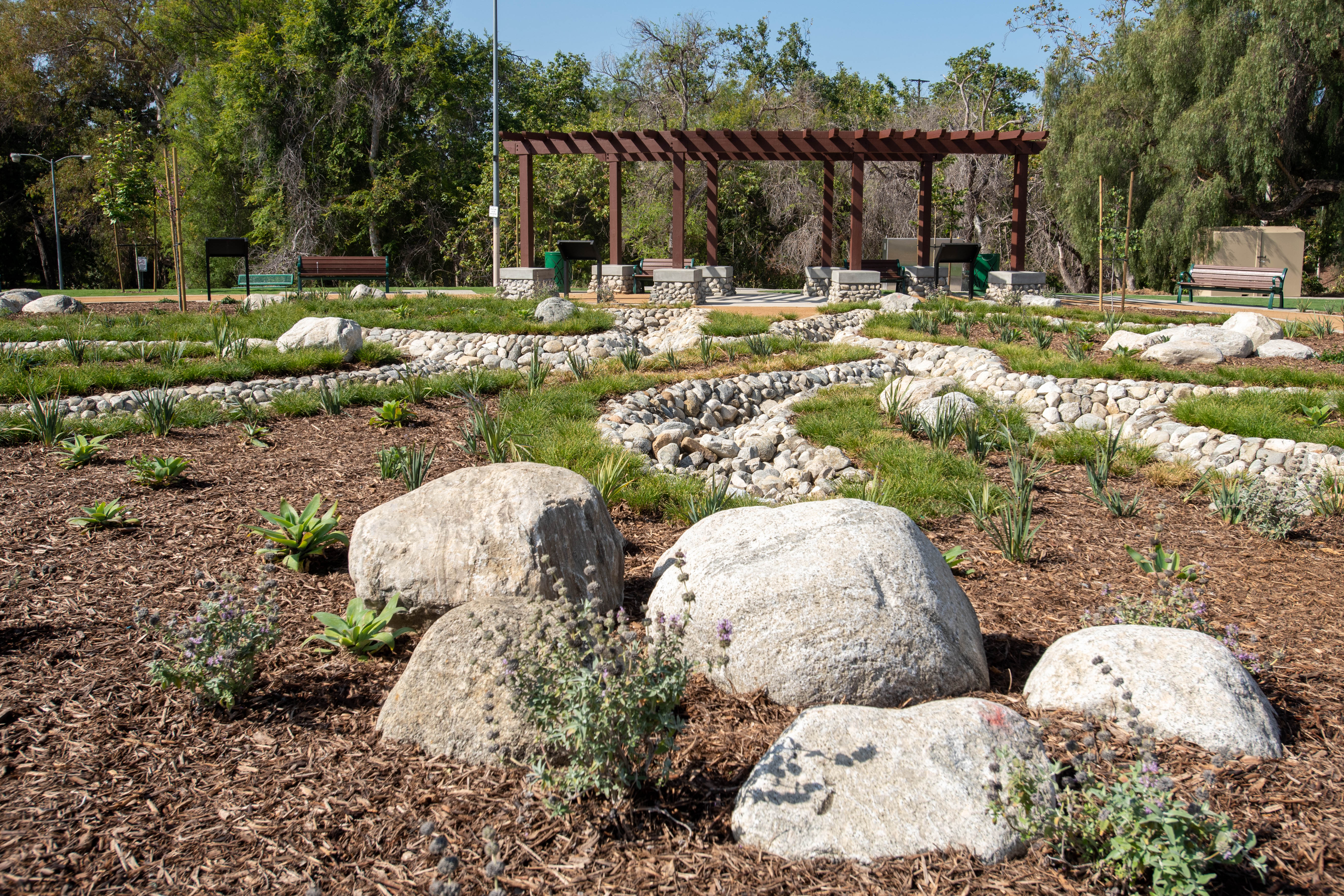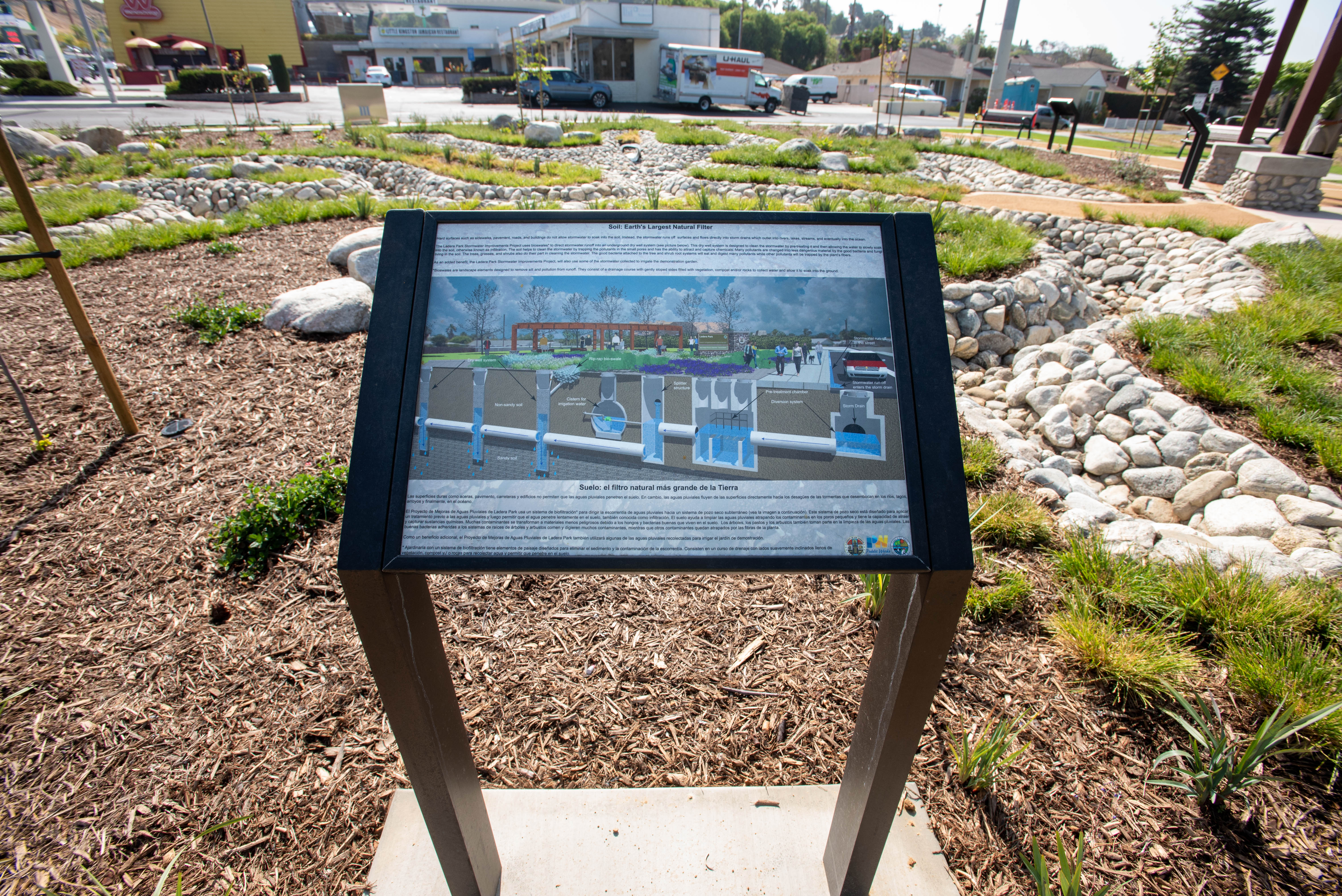 Project features include new drainage infrastructure to capture and treat stormwater. More than half a million gallons of stormwater will be converted annually to irrigate the park and infiltrate approximately 25 million gallons into underground wells below Ladera Park.