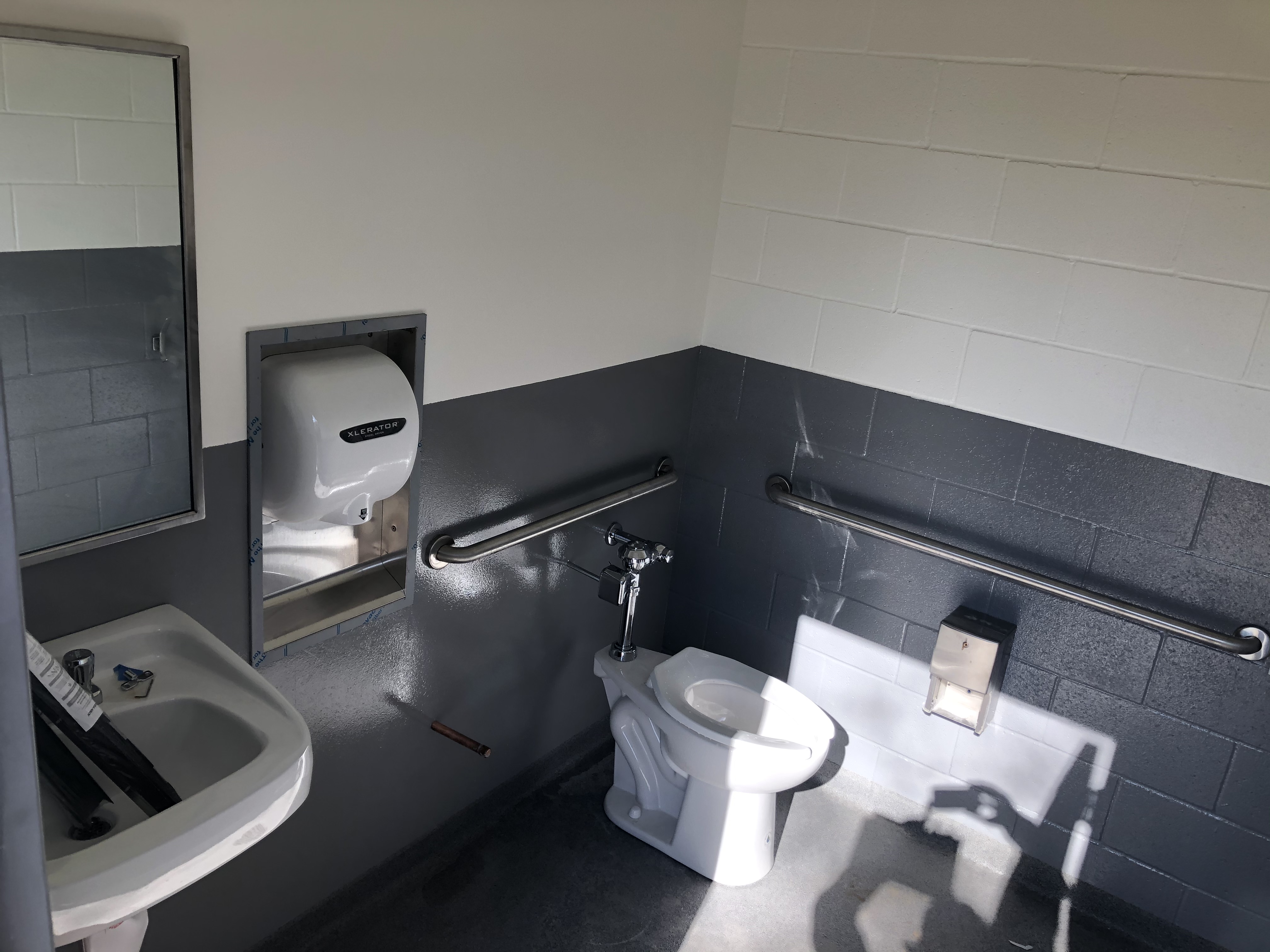 JANUARY 2020 – The restroom and equipment structure has been completed. Grading and conditioning of the play field has been completed, while placement of the new grass and trees are to follow in the coming weeks. Work on the diversion structure in the roadway is ongoing and anticipated to be completed in March.